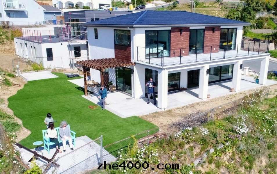 Fully electric house, no natural gas, Tesla Solar Roof, two Tesla Powerwalls, two electric cars. Photo by Chuck Field.