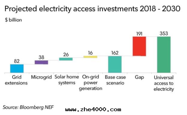 然而(ér),到(dào)2020年(nián)中(zhōng)期(qī),分(fēn)布(bù)式技術(shù)将建立供應(yìng)鍊(liàn)和(hé)更(gèng)便宜的(de)組件(jiàn)。此(cǐ)外(wài),在(zài)那(nà)时(shí),電(diàn)网擴展(zhǎn)和(hé)微電(diàn)网之(zhī)間(jiān)的(de)競争在(zài)經(jīng)濟上(shàng)可(kě)行的(de)區(qū)域将更(gèng)少(shǎo)。基于(yú)这(zhè)些(xiē)假设,彭博社团(tuán)隊認为(wèi),到(dào)2030年(nián),有(yǒu)2.38亿(yì)户家(jiā)庭獲得電(diàn)力供應(yìng),7200万(wàn)家(jiā)庭将使用(yòng)太陽能(néng)家(jiā)庭系(xì)統,3400万(wàn)家(jiā)庭将從微電(diàn)网獲取(qǔ)能(néng)源。