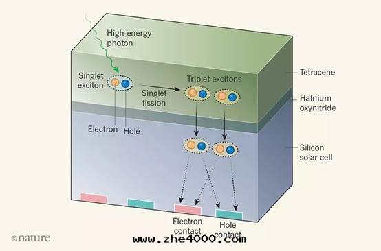 此(cǐ)前(qián)人(rén)们(men)发現(xiàn),在(zài)並(bìng)四(sì)苯等某些(xiē)有(yǒu)機(jī)材料里(lǐ),一(yī)个(gè)分(fēn)子吸收(shōu)一(yī)个(gè)高(gāo)能(néng)光子後(hòu),可(kě)将部(bù)分(fēn)能(néng)量(liàng)轉(zhuǎn)移給(gěi)另(lìng)一(yī)个(gè)分(fēn)子,最(zuì)終(zhōng)产生(shēng)两(liǎng)个(gè)電(diàn)子,这(zhè)種(zhǒng)現(xiàn)象(xiàng)稱为(wèi)“單線(xiàn)态激子裂變(biàn)”。理(lǐ)论上(shàng),在(zài)矽電(diàn)池上(shàng)覆蓋一(yī)层(céng)並(bìng)四(sì)苯,就能(néng)用(yòng)一(yī)个(gè)高(gāo)能(néng)光子獲得两(liǎng)个(gè)電(diàn)子,但如(rú)何讓“單線(xiàn)态激子裂變(biàn)”产生(shēng)的(de)两(liǎng)个(gè)電(diàn)子轉(zhuǎn)移到(dào)矽材料中(zhōng)是(shì)一(yī)个(gè)關(guān)鍵難題(tí)。